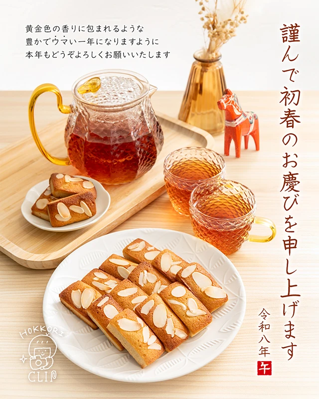 さて、今年の年賀状は、年末に焼いたフィナンシェの写真を全面に押し出した、趣味全開のデザインとなりました。