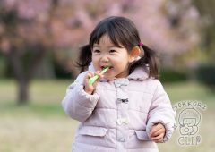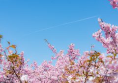 桜の花に近寄っていって嗅いだりして、