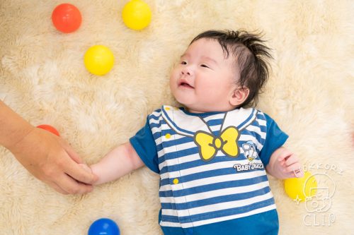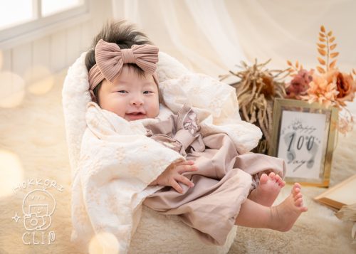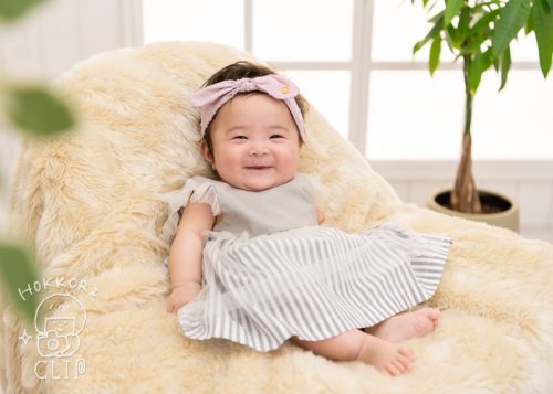 百日祝いの記念に、スタジオで記念写真を撮影をさせていただきました!にっこにこの笑顔に癒されます✨