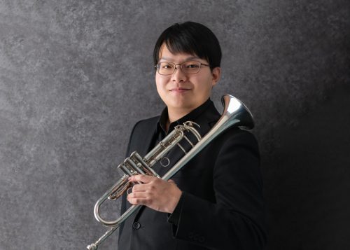 お写真紹介プロフィール写真 アーティスト写真|トランペットとFさま トランペット奏者Fさまのアーティスト写真。卒業演奏会前に、パンフレット用の写真を印象的に撮影しました✨ 2025.03.26 プロフィール写真